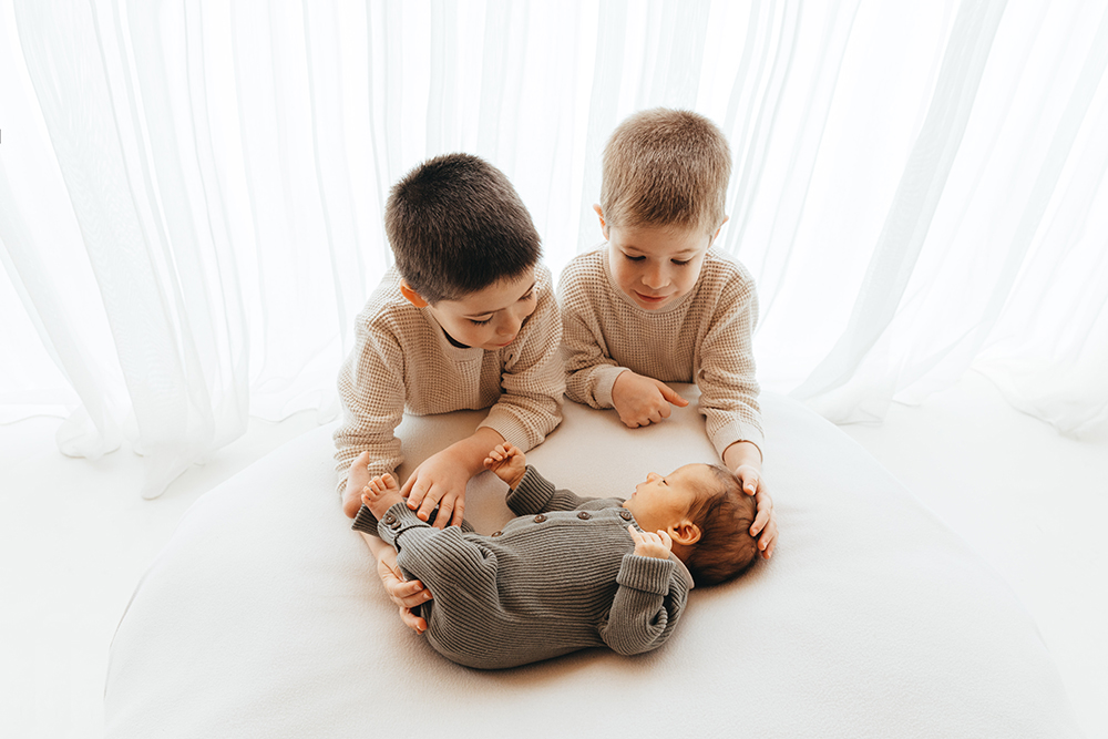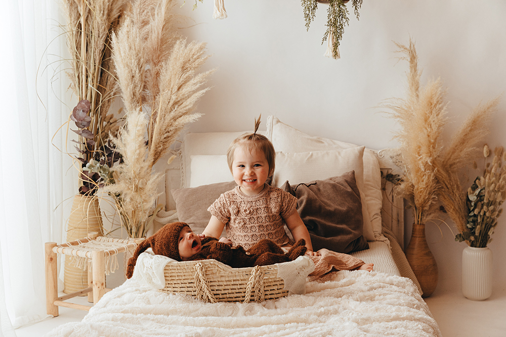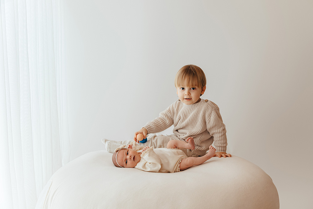 Natürlich dürfen auch Geschwisterbilder nicht fehlen. Sobald diese Bilder gemacht sind, steht ein voll eingerichtetes Spielzimmer bereit, in dem sie sich beschäftigen können. Auch draußen gibt es Möglichkeiten zum Spielen und Toben – so wird der Besuch bei mir für die ganze Familie zum entspannten Erlebnis.